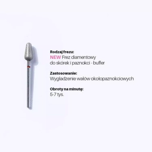 - Frez diamentowy do skórek i paznokci (buffer) wygładza wały okołopaznokciowe.
