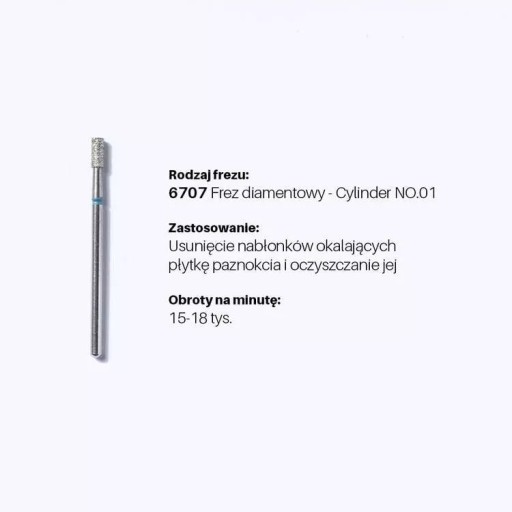 - Frez diamentowy Cylinder NO.01 do usuwania i oczyszczania nabłonków wokół paznokcia;