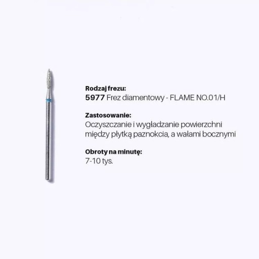 - Frez diamentowy - FLAME NO.01/H: Oczyszczanie i wygładzanie powierzchni między płytką paznokcia a wałami bocznym
