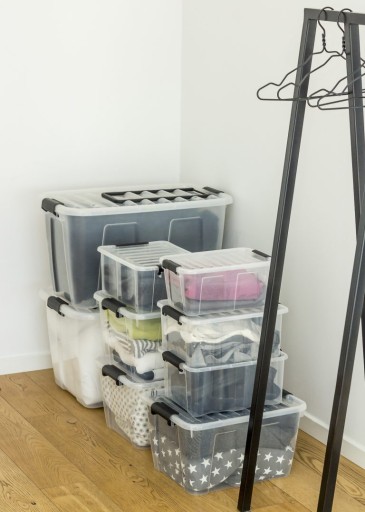 Pojemnik ma stabilne klipsy zamykające, które zapewniają, że wieczko pozostaje na swoim miejscu. Pudełka Home Box można łatwo układać jeden na drugim, a specjalne żłobienia zapobiegają przesuwaniu się pojemników.