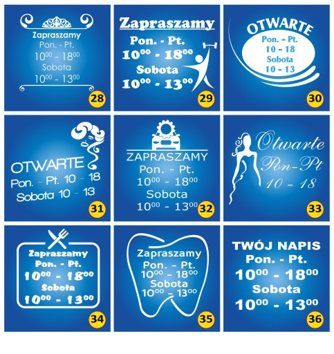 Naklejka na szybę, witrynę, drzwi, okno wycięta z folii samoprzylepnej ORACAL 641, odpornej na warunki atmosferyczne.