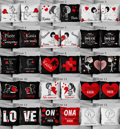 Zestaw dwóch poduszek na walentynki, dwa wzory które po złączeniu tworzą całość.
