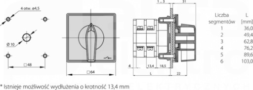 SPAMEL ŁĄCZNIK KRZYWKOWY 0-1 3P 16A DO WBUDOWANIA ŁK16R-2.8211/P03