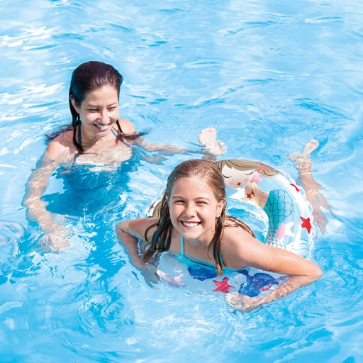 Produkty firmy Intex wykonane są z bardzo dobrej jakości przetestowanego tworzywa gwarantując dziecku komfort i bezpieczeństwo podczas ich użytkowania. Dmuchane koło do pływania nie tylko zachwyca bajkową grafiką i pięknymi kolorami ale również pomaga maluchowi bezpiecznie utrzymać się na wodzie i jest niezwykle pomocne w nauce pływania.