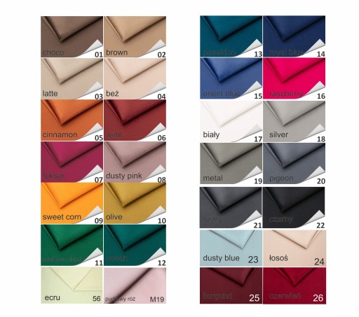 Poniżej znajdują się dostępne kolory tkanin i wzory do wyboru.