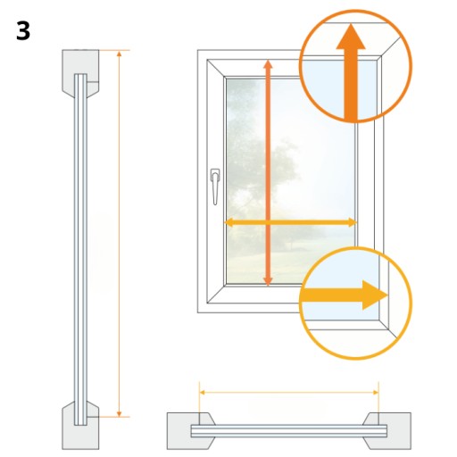 1. By przygotować dla Ciebie idealną żaluzję, musimy znać wymiar Twojego okna. W przypadku tego modelu, są trzy rodzaje montażu, co oznacza trzy różne metody pomiaru okna: