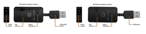 W3 składa się z dwóch modułów: modułu nadajnika i odbiornika. Nadajnik transmituje dźwięk dostarczany przez USB-audio lub do wejścia analogowego. Odbiornik odbiera transmisję dźwięku, dekoduje go i przekazuje go na standardowe wyjście mini-jack, do podłączonego urządzenia odtwarzającego.