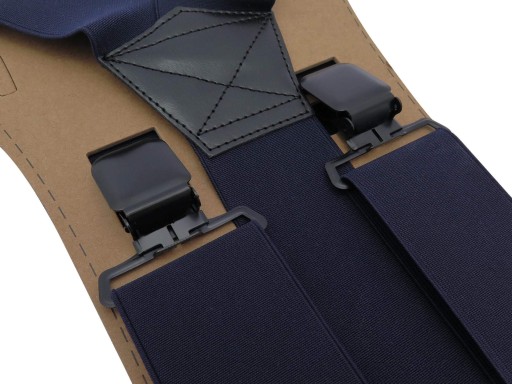 Granatowe bardzo szerokie szelki męskie do spodni dla dużych lub wysokich mężczyzn.