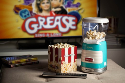 Maszynka do prażenia popcornu marki Ariete z linii Party Time o mocy 1100 W to eleganckie i funkcjonalne urządzenie w stylu amerykańskich lat 50. Moc urządzenia pozwala przygotować 60 g prażonej kukurydzy w 2 minuty i to prosto do kubełka. Maszyna posiada system Hot Air, dzięki czemu popcorn z tego urządzenia jest przygotowany bez oleju. Urządzenie wyposażone w antypoślizgowe nóżki, dzięki czemu stoi stabilnie na blacie oraz posiada miarkę, którą odmierzysz odpowiednią ilość kukurydzy.