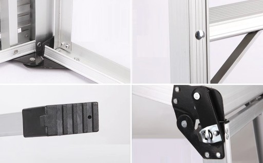 Platforma ryflowana w celu zapewnienia wyższej przyczepności, stopki antypoślizgowe nitowane do konstrukcji zabezpieczają podłoże przed uszkodzeniem.