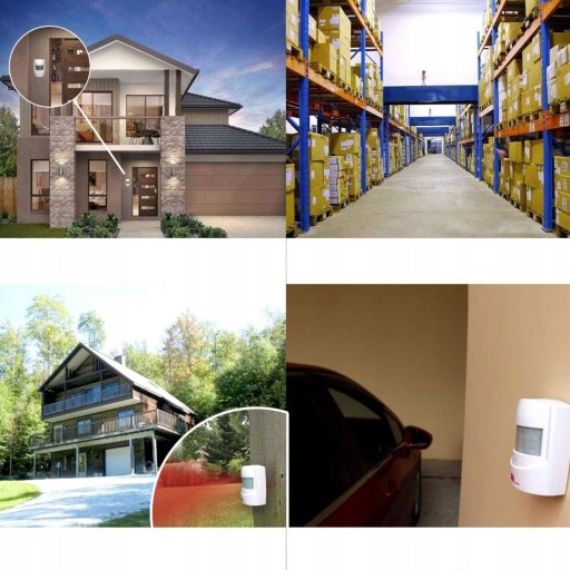 - zestaw dwóch czujników ruchu do kontroli drzwi wejściowych, korytarzy, pomieszczeń magazynowych, piwnic, wjazdów, parkingów itp.