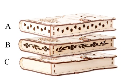 Pudełko wykonane ze sklejki o grubości 3mm , elementy wycinane i grawerowane laserowo