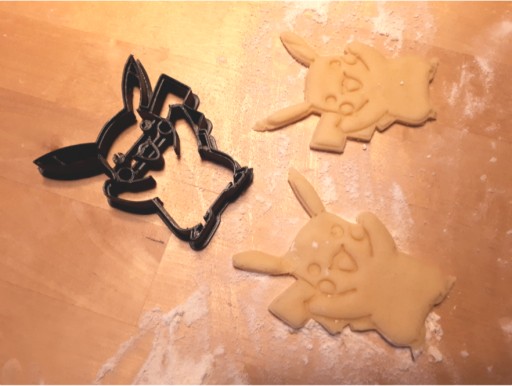 Wykrawacz w kształcie Pikachu. Jednocześnie wykrawa kształt oraz odciska wzór.