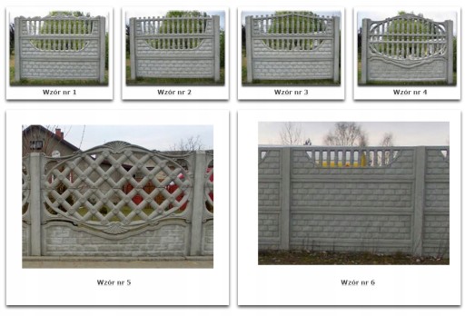 Cena na aukcji dotyczy każdego wzoru składającego się z trzech płyt i słupka (ogrodzenie 1,5 metra wysokości) - nie ma znaczenia który wzór Państwo wybierzecie.