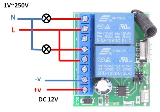 Zdalne sterowanie 2 kanały zasilanie 12VDC