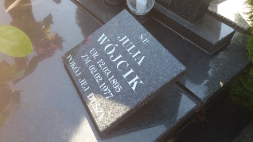 Tablice granitowe to jedne z najchętniej wybieranych rodzajów tablic nagrobkowych, czego powodem jest ich wysoka jakość i doskonała trwałość. Oferujemy tablice w różnych rozmiarach wykonane jest z polerowanego czarnego granitu grubosci ok. 1,5cm z polerowanymi bokami i fazą wykończeniową. Przy wykonywaniu naszych tablic nagrobkowych dbamy o najdrobniejsze szczegóły, które ustalamy wspólnie z zamawiającym. Pełna kolorystyka, krój i wielkość czcionki, a także dodatkowe elementy ozdobne modyfikujemy na poziomie projektu i oddajemy Klientowi do zatwierdzenia, dzięki temu wersja finalna w pełni odpowiada jego oczekiwaniom. Do produkcji używamy najwyższej jakości materiałów, aby tablice przetrwały w niezmienionym wyglądzie długie lata. Nasze wieloletnie doświadczenie pozwala nam świadczyć najlepsze usługi. Istnieje możliwość bezpiecznej wysyłki tablicy przez firmę kurierską. Kolor liter - złoty srebrny lub biały wykonujemy na zamowienie klienta.