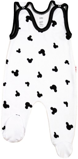 Śpioszki posiadają wklejane metki, które po usunięciu nie drażnią delikatnej skóry niemowlęcia.
