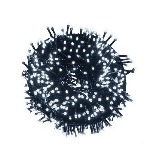 - SPECYFIKACJA – ilość trybów: 8; rodzaj oświetlenia; LED; sterownik: tak; barwa światła: zimne białe; ilość diod LED: 500; klasa wodoodporności: IP44; zasilanie: sieć energetyczna; moc: 3,72W; napięcie: 230V / 31V; długość całkowita: 53 m; waga: 0,8 kg; waga w opakowaniu: 0,87 kg.