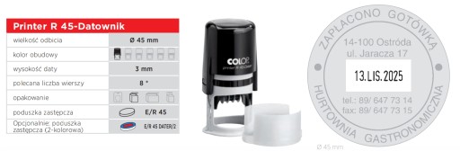 COLOP PRINTER R45 DATOWNIK pieczątka z gumką 45mm