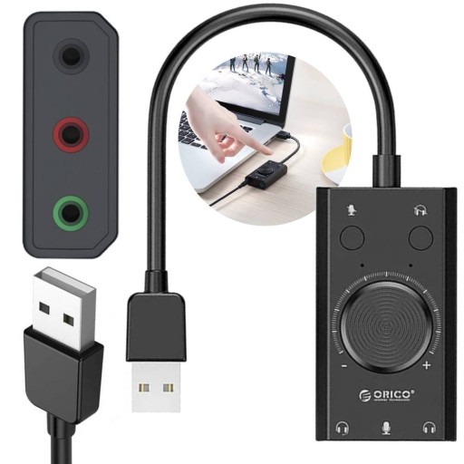 ORICO SC2 to wielofunkcyjna zewnętrzna karta dźwiękowa USB z 2 x portami zestawu słuchawkowego i 1 x port mikrofonu. Urządzenie posiada regulację głośności i nie wymaga instalowania sterowników.