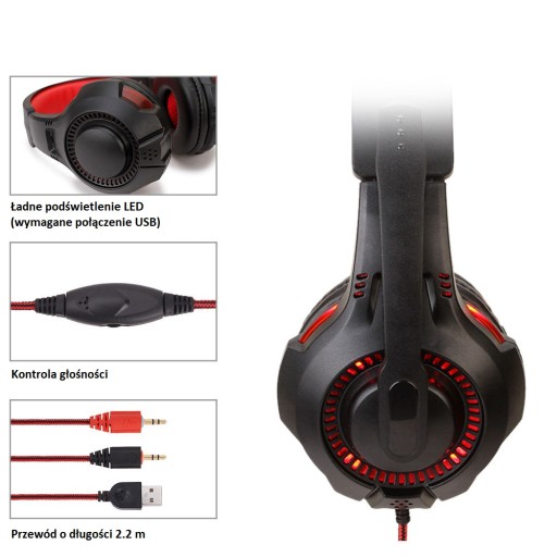 PROFESJONALNE SŁUCHAWKI DLA GRACZY Z PODŚWIETLENIEM LED I MIKROFONEM.