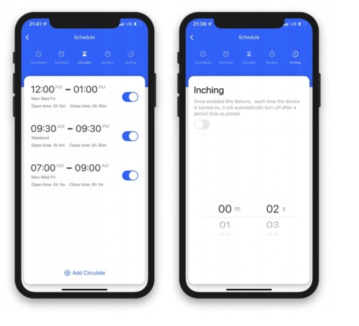 Circulate - praca w pętli włącz/wyłącz. Na przykład: włączony przez 1 minutę, wyłączony przez 2 minuty - w ciągłej pętli, w określonych porach i dniach.