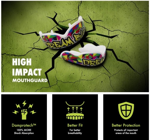 Wybierz ten model ochraniacza szczęki a nigdy nie będziesz chciał innego. Unikalne połączenie najwyższej jakości wykonania z systemem przełomowego procesu formowania i dopasowania ochraniacza. Opatentowany materiał DAMPROTECH sprawia, że model High Impact dopasowuje się do zębów jak żaden inny i pochłania aż 150 % więcej wstrząsów podczas uderzeń.