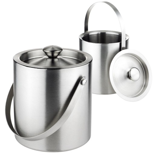 WIADERKO DO LODU COOLER POJEMNIK Z POKRYWKĄ na lód KOSTKI 1,5L STALOWE