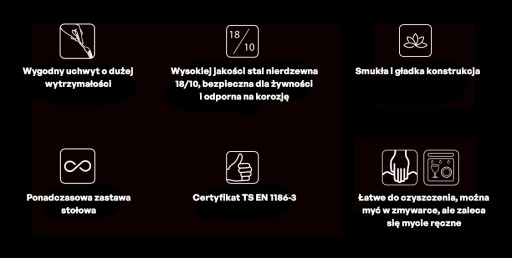 Nowe sztućce należy myć ręcznie przez pierwsze kilka tygodni użytkowania - zaleca się mycie miękką gąbką w ciepłej wodzie z dodatkiem płynu do mycia naczyń. Bezpośrednio po wymyciu sztućce należy wytrzeć do sucha. Jeżeli podczas wycierania na ręczniku pozostaną ślady smaru technicznego, procedurę należy powtórzyć 2-3 razy. Podczas wkładania sztućców do zlewu należy upewnić się, że ostrza noży stołowych nie uszkadzają polerowanej powierzchni innych sztućców. W późniejszym czasie sztućce można myć w zmywarce. Podczas mycia w zmywarce noże należy myć oddzielnie od reszty sztućców (w osobnych komorach), ponieważ wysokie temperatury i wysokie stężenia detergentu mogą powodować powstawanie plam i osadów na powierzchni. Można je łatwo usunąć za pomocą każdego rodzaju proszku do czyszczenia lub środka do czyszczenia naczyń lub metalu.