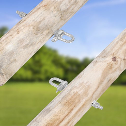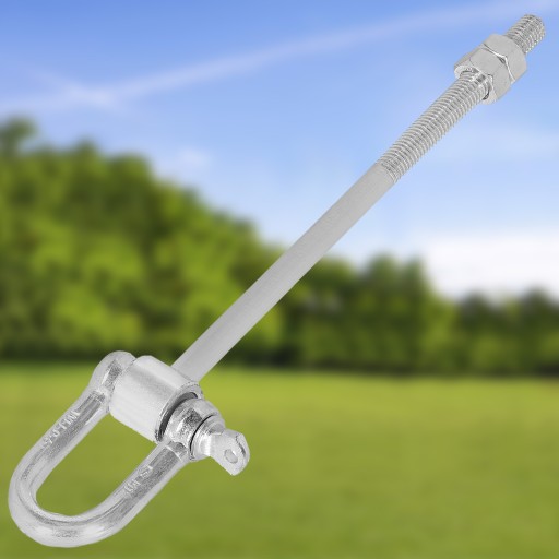 - Hak huśtawkowy z szeklą wykonany z ocynkowanej stali, który posiada teflonowe łożysko, umożliwia wieloletnią żywotność oraz odporność na ścieranie i mrozy.