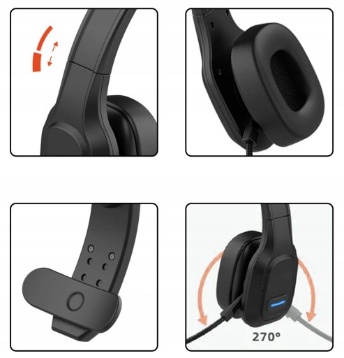 - Słuchawki z mikrofonem idealne do call center, pracy i nauki zdalnej oraz dla kierowców