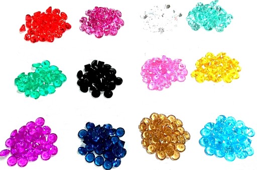 DEKORACYJNE KAMIENIE AKRYLOWE MIKS KOLOROWE W KSZTAŁCIE STOŻKA WYSOKIE 13 MM , SZEROKIE 19 MM.