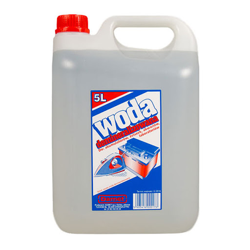 Woda Demineralizowana inaczej dejonizowana. Nie pozostawia kamienia , dzięki czemu przedłuża żywotność oraz trwałość urządzeń.Ma swoje zastosowanie w motoryzacji, labolatoriach ,akwarystyce, oraz szerokie zastosowanie w gospodarstwie domowym.