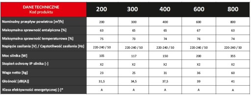 - wymiennik entalpiczny (dodatkowe nawilżanie/osuszanie powietrza doprowadzanego do pomieszczenia; brak kondensatu -> brak konieczności wykonywania instalacji odprowadzającej skropliny i minimalizacja ryzyka szronienia),