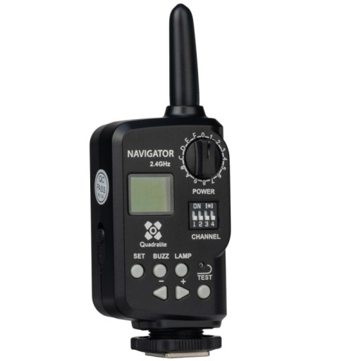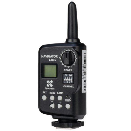 Quadralite Navigator 2.4 GHz to nadajnik Systemu X zdalnego wyzwalania i kontroli mocy wyzwalania lamp reporterskich i studyjnych Quadralite i Godox (modele zaopatrzone w odbiornik Systemu X).