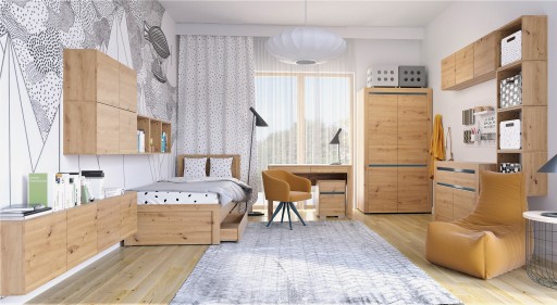 - korpus i front wykonany z płyty laminowanej w kolorze dąb artisan z widocznymi słojami drewna i sękami
