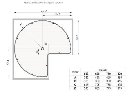Półka obrotowa REJS linii NOVA 3/4 fi600 - ocynk
