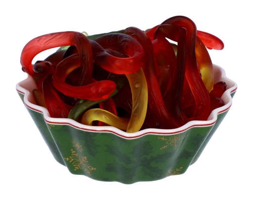 Nie martw się, nasze węże nie gryzą! Cola-Schlangen same w sobie są jadalne. Nikt nie może się oprzeć naszym żelkom w owocowym smaku wiśni i cytryny w połączeniu z modnym smakiem coli.