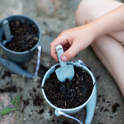 - materiał: wiaderko: wytrzymały silikon, używany do produkcji opakowań produktów spożywczych, w 100% nadający się do recyklingu; łopatka: PVC wolny od ftalanów