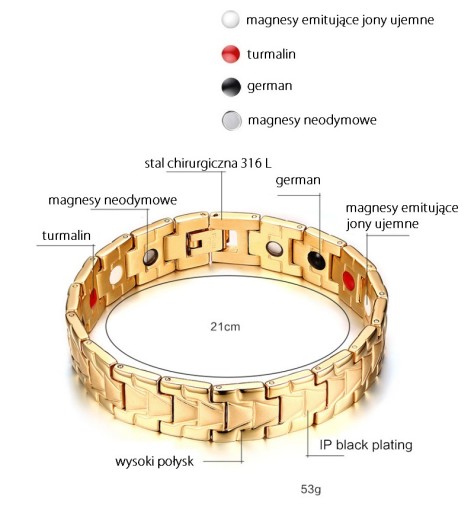 Magnesy emitujące jony ujemne - mają niwelować negatywne działanie dodatniej jonizacji oraz usprawniać funkcjonowanie układu krwionośnego i oddechowego, poprawiać prace serca oraz przyśpieszać regenerację. Dlatego bransoletki polecane są osobom w każdym wieku i pracującym w różnych branżach.