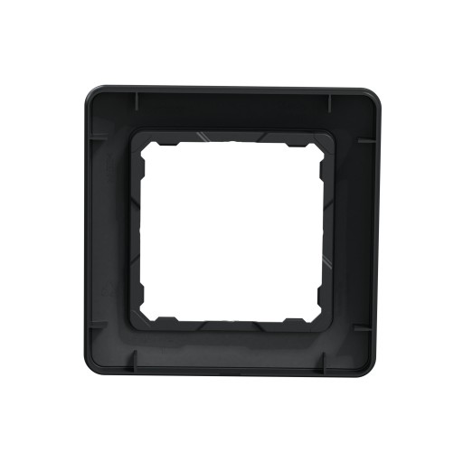 - Ramka 1-krotna ma malowane wykończenie powierzchni w kolorze czarnego antracytu i posiada następujące wymiary: szerokość 85 mm, wysokość 85 mm, głębokość 10 mm. Ramka charakteryzuje się stopniem ochrony IP20.