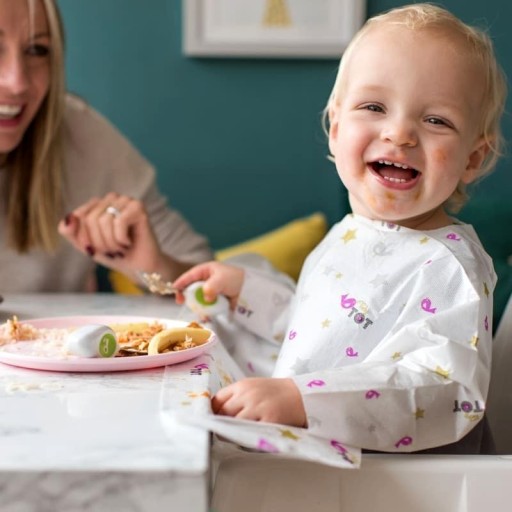 Jednorazowy wodoodporny śliniaczek z długimi rękawami zapewniającymi pełną ochronę przed bałaganem podczas posiłku.