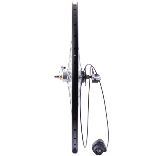 - Informację dodatkowe: - precyzyjna przekładnia zintegrowana wewnątrz piasty jest niemalże niewrażliwa na warunki zewnętrzne; koło przystosowane jest pod oponę o szerokości 24"x1,4-2,25; manetka wraz z osprzętem w komplecie