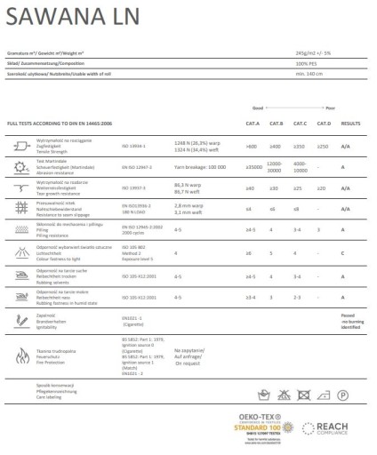 - warstwa wierzchnia to wysokogatunkowa tkanina obiciowa o bardzo wysokiej odporności na ścieranie sięgającej 100 000 cykli