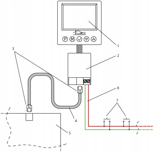 Obydwa moduły łączone są ze sobą za pomocą przewodu 7-żyłowego, o długości kilkunastu centymetrów.