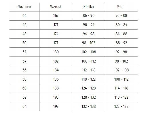 Tabela prezentowana na aukcji przedstawia wymiary sylwetki człowieka a nie odzieży.