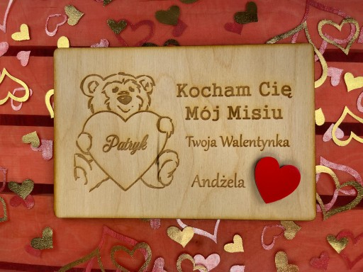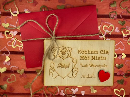 - kolor: naturalny, serduszka naklejane czerwone, koperta czerwona