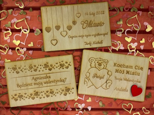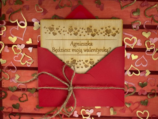 Grawerowana kartka z życzeniami i kopertą na walentynki