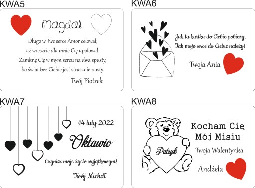 - Umiejscowienie i ilość przyklejonych serduszek może różnić się od prezentowanego we wzorach. Nie ma możliwości wyboru.