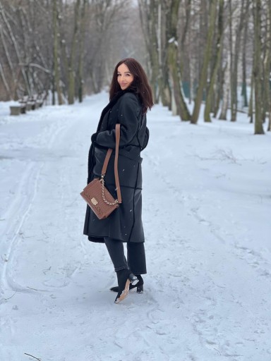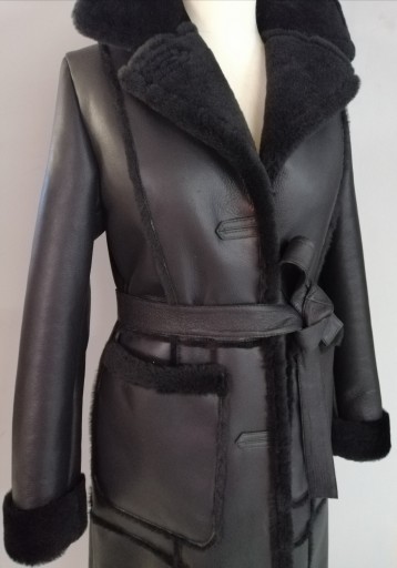 Klasyka i elegancja w wydaniu kożucha Andżela. Naturalna skóra owcza pokryta powłoką silka do złudzenia przypominającą skórę licową. Od spodu czarne futerko. Posiada naszyte kieszenie. Na szwach delikatnie wypuszczany włos. Kożuch zapinany na guziki do samodzielnej regulacji( na życzenie przyszywane). Posiada także pasek. Produkt szyty na bieżąco. Termin realizacji do 7 dni roboczych.